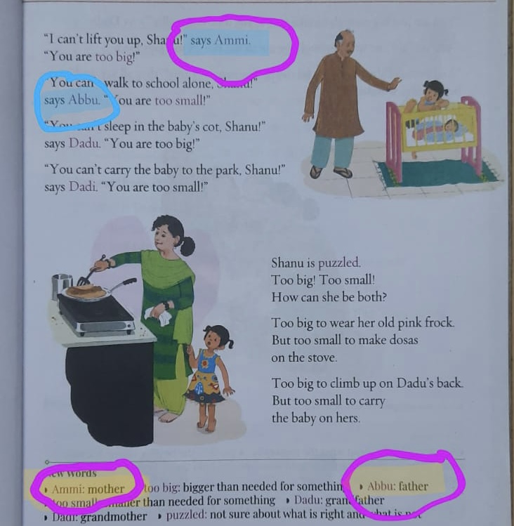 देहरादून से एक अजीबो ग़रीब मामला सामने आया है जहां पर दूसरी कक्षा में पढ़ने वाला बच्चा अपनी मम्मी पापा को अम्मी अब्बू कहने लगा है अभिभावकों ने बच्चे से पूछा की वो उन्हें अम्मी अब्बू क्यों बोला रहा है तो बच्चे ने बोला उसने बुक से पढ़ा है जिसके बाद माता पिता हैरान रह गए उन्होंने आईसीएसई बोर्ड के सेकंड क्लास की अंग्रेजी की किताब देखी तो वाक़ई चौकने वाला सीन था