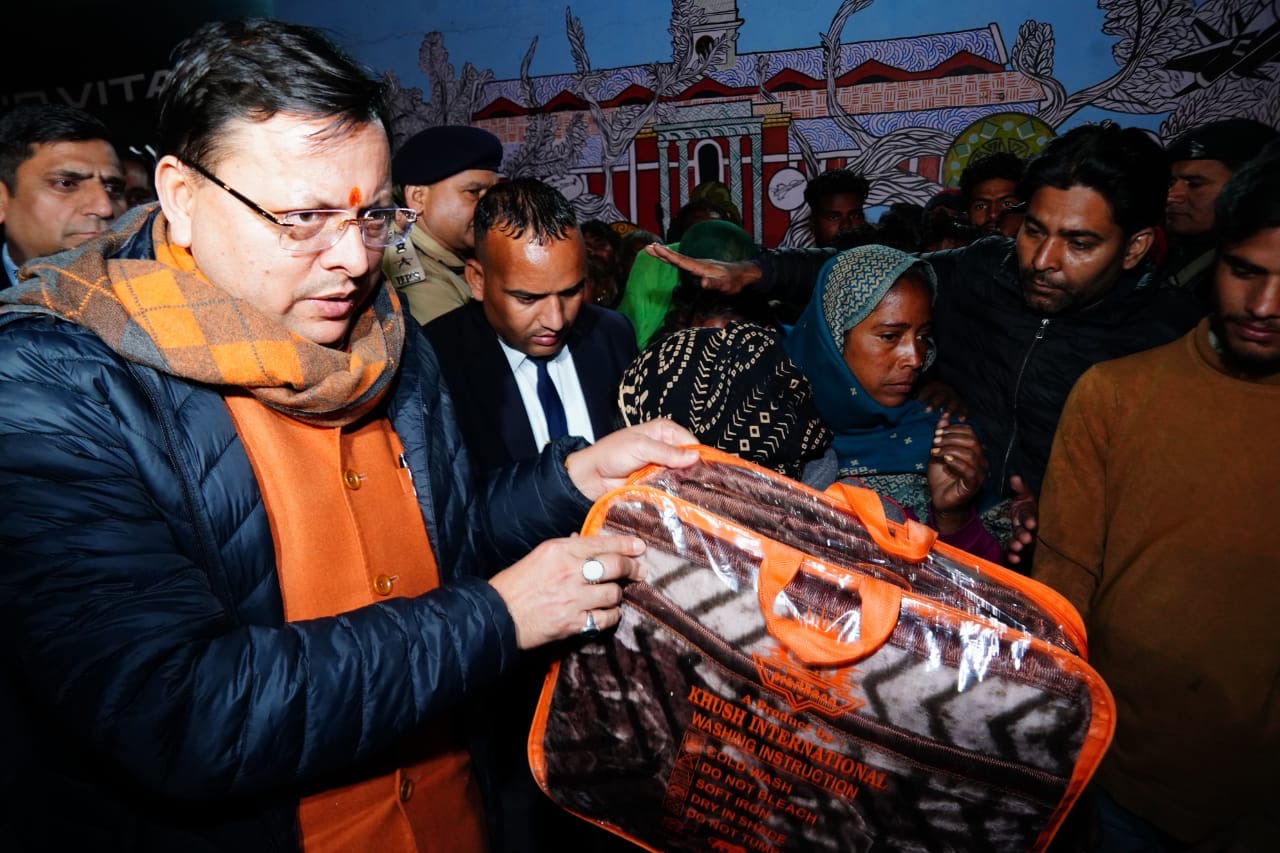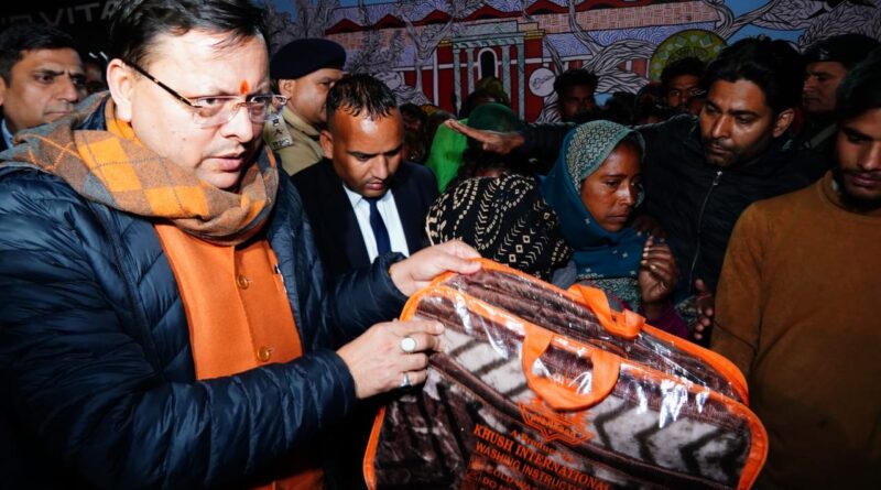 मुख्यमंत्री धामी ने जरूरतमंदों को कम्बल बांटे
