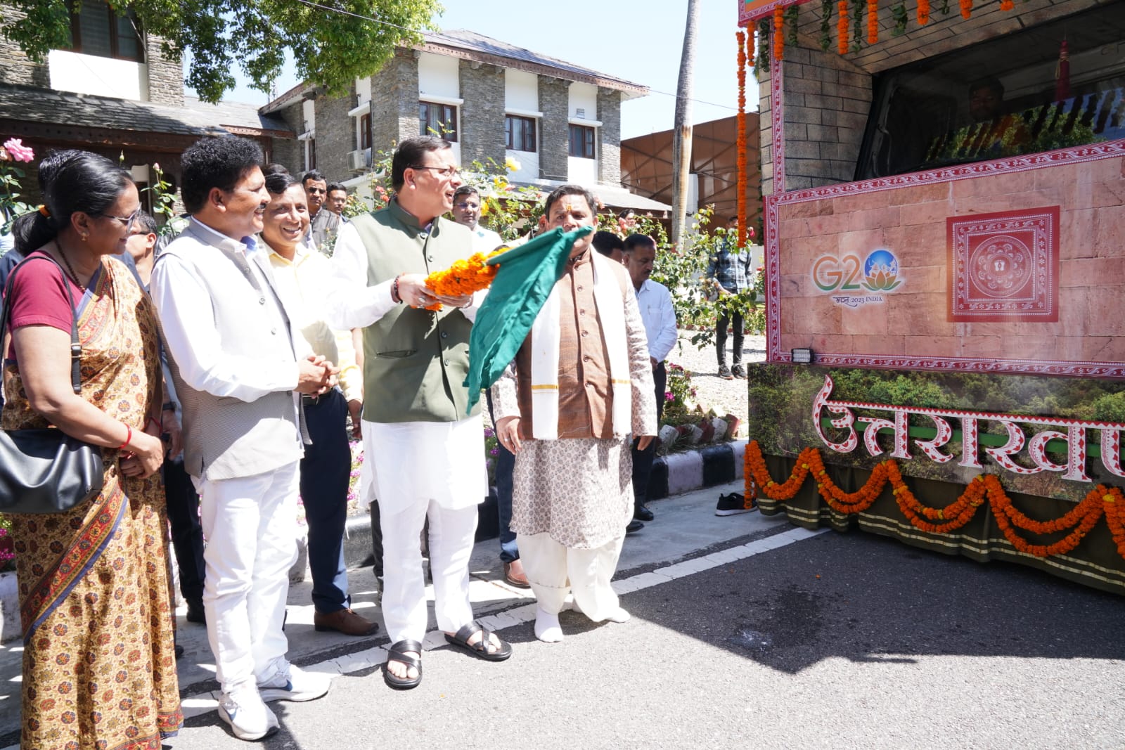 मुख्यमंत्री पुष्कर सिंह धामी ने बुधवार को मुख्यमंत्री आवास से गणतंत्र दिवस परेड-2023 में प्रथम स्थान पर रही उत्तराखण्ड राज्य की झांकी ‘मानसखण्ड’ को प्रदेश के जनपदों मुख्यालयों पर प्रदर्शन हेतु फलैग ऑफ किया। गणतंत्र दिवस परेड-2023 में विभिन्न राज्यों व भारत सरकार के मंत्रालयों की 27 झांकियों में उत्तराखण्ड की मानसखण्ड झांकी को प्रथम स्थान प्राप्त हुआ।